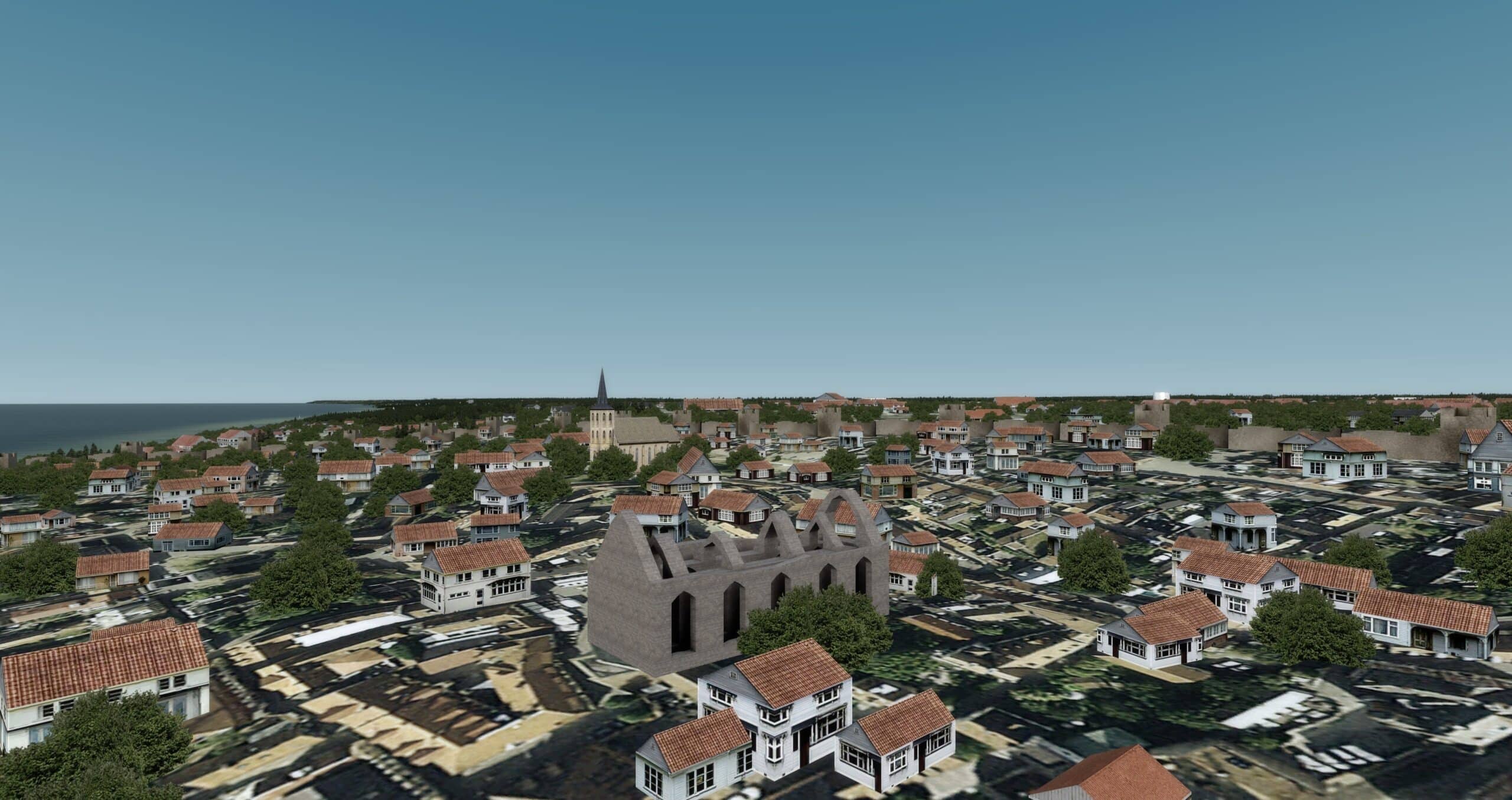 Hier noch ein paar Aufnahmen aus der Stadt. Visby ist rudimentär modelliert, ähnlich wie Kiruna, und mit Fototapete ausgestattet. Es belebt damit die Umgebung von Visby Airport ganz gut. Für ausgiebige VFR-Rundflüge ist es aber sicher nicht detailliert genug.