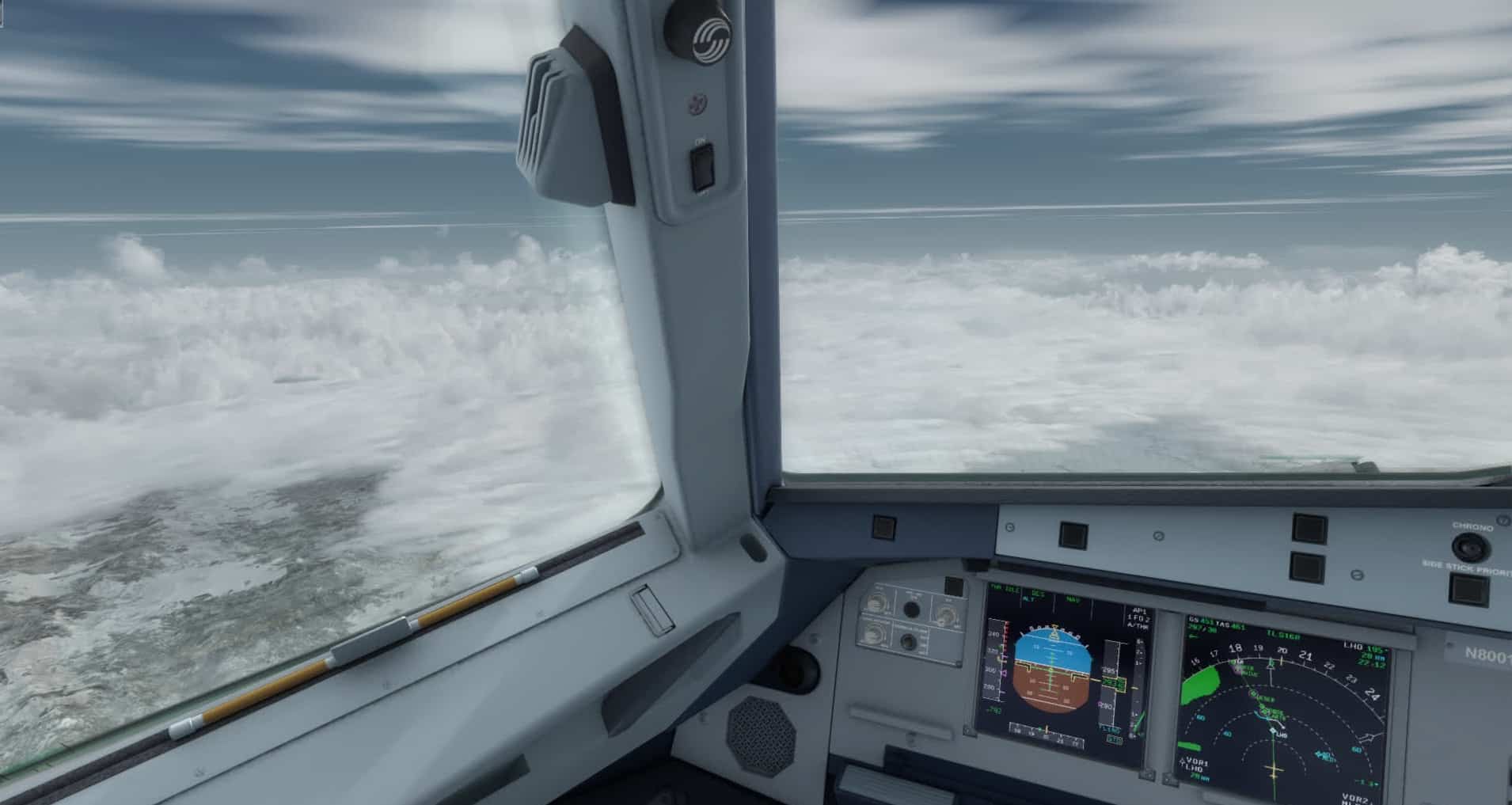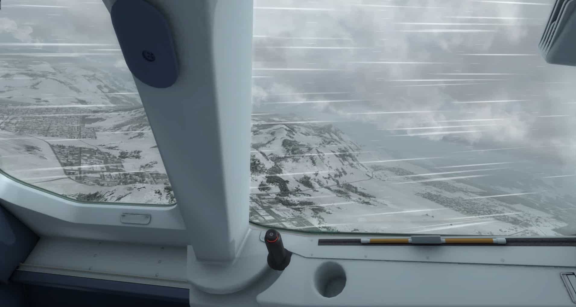 Zum Zeitpunkt der ersten Flüge ist noch Februar, und das Rheinland arbeitet stark daran, durch Alkohol und Verkleidungen den Winter zu vertreiben. Salt Lake City liegt auf ca. 1300 Metern Höhe, da bleibt der Winter noch ein wenig. Während des kurzen Fluges scheinen ab und an Gipfel durch die Wolkendecke. Besonders windig ist es beim Endanflug, der weitgehend über den großen Salzsee führt, übrigens nicht, das Geschaukel im Video ist eher meiner mangelnden Praxis in Aerosoft’s Airbus geschuldet (aber hey, ich habe in Echt schon schlimmeres Geschaukel erlebt…).