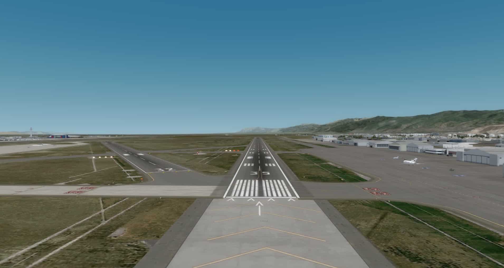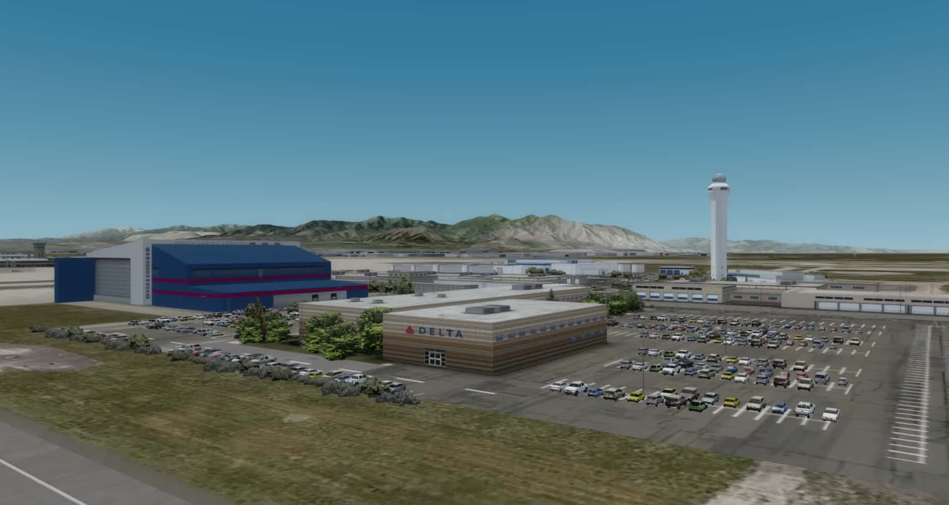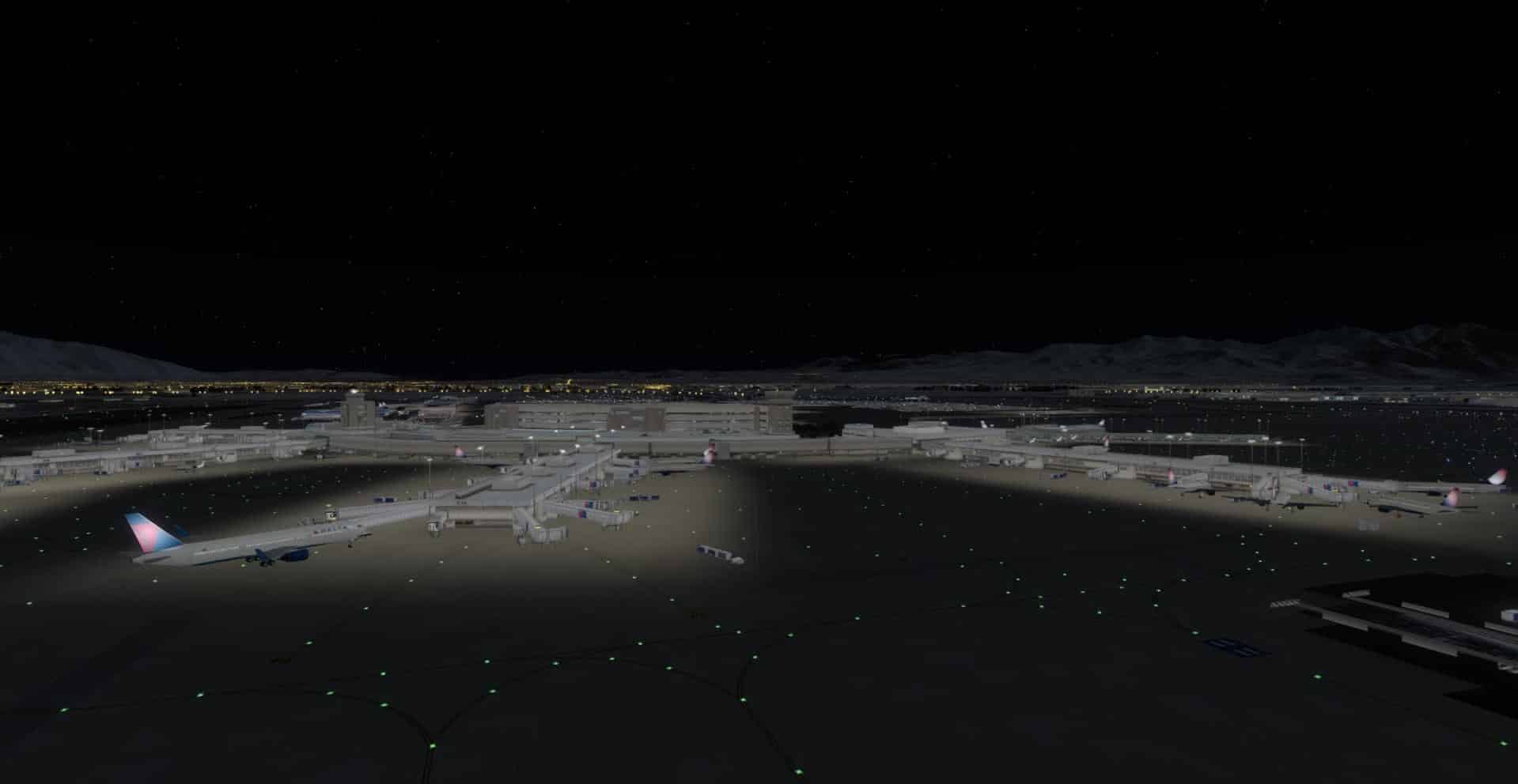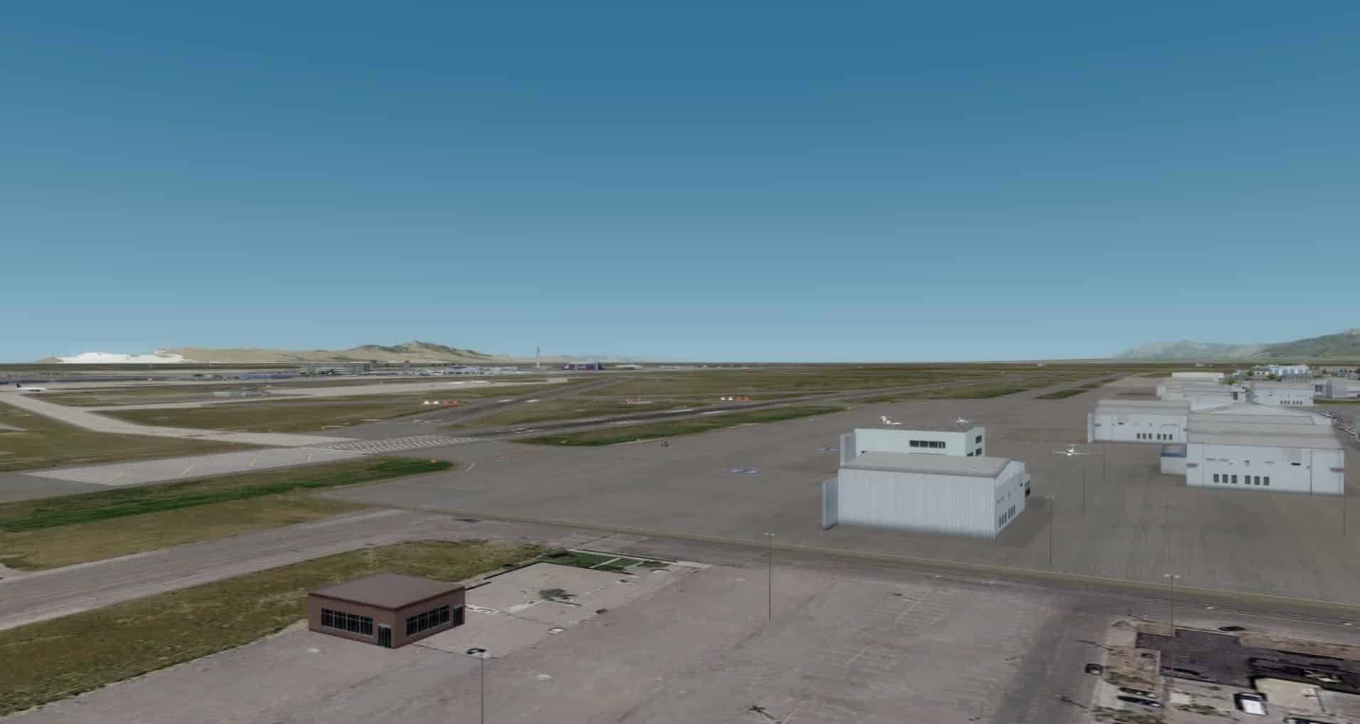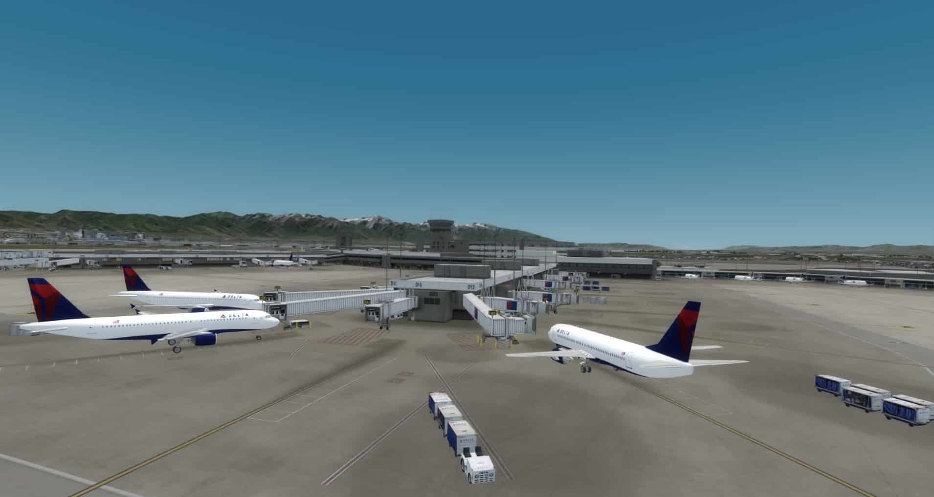 Der örtliche Flughafen trägt den wenig phantasievollen Namen Salt Lake City International Airport. Er fertigt jährlich etwa 20 Millionen Passagiere ab (zum Vergleich: Frankfurt 60 Mio.), verfügt dafür über 3 Terminals, und – ungewöhnlich für einen derart großen Verkehrsflughafen – einen relativ großen General Aviation-Bereich. Der Verkehr wird mit vier weitgehend parallelen Bahnen abgewickelt. 16L/34R und 16R/34L sind 3,7 km lang, östlich davon liegt die ca. 3 km lange Bahn 17/35. Neben diesen großen Bahnen gibt es noch die 14/32 mit 1,5 km Länge. Aus Gründen des Lärmschutzes wird der Verkehr hier bei geeigneten Windverhältnissen aus und nach Norden abgewickelt (siehe hier), ein Konzept, das sich im FSX/P3D nur schwierig nachbilden lässt.