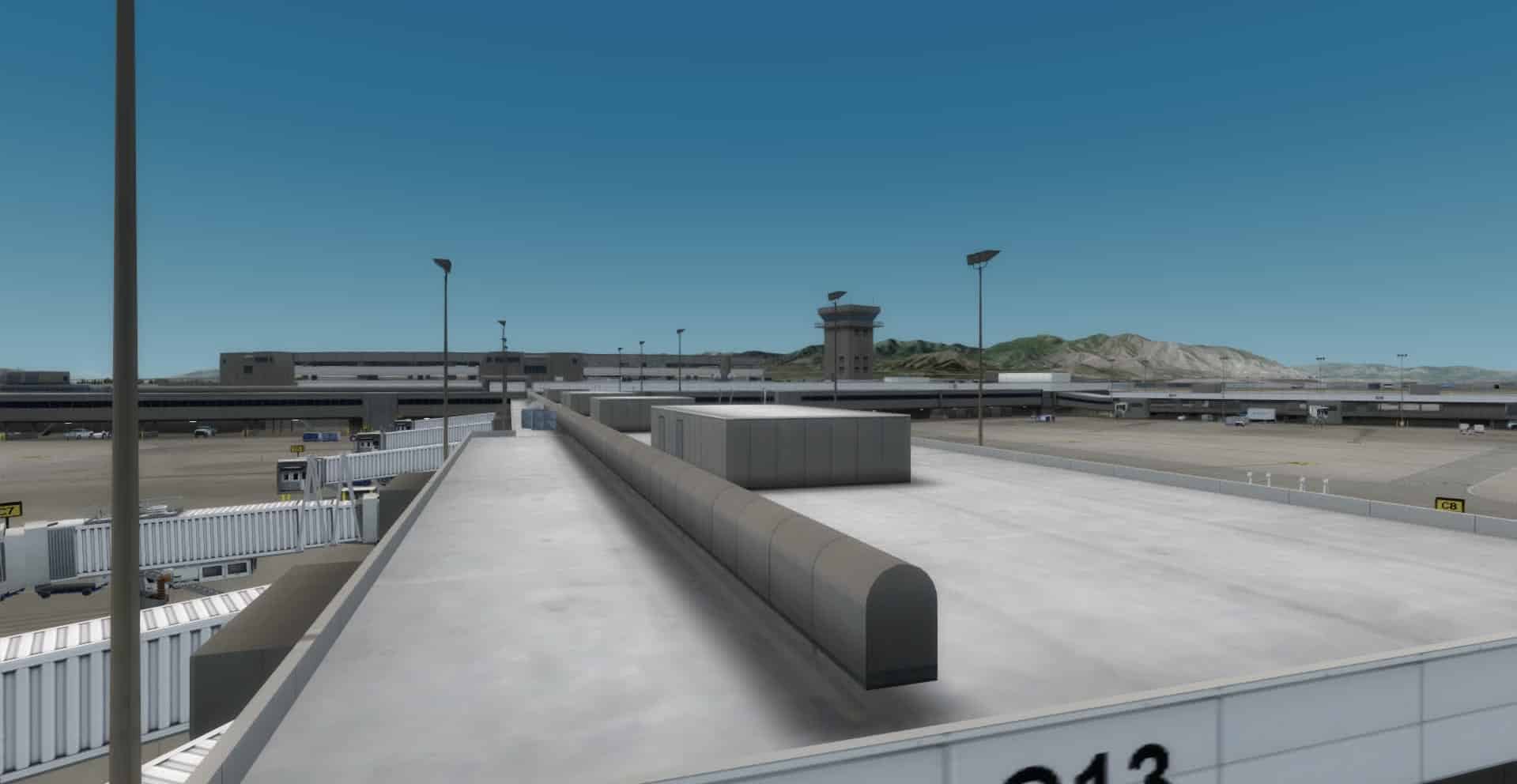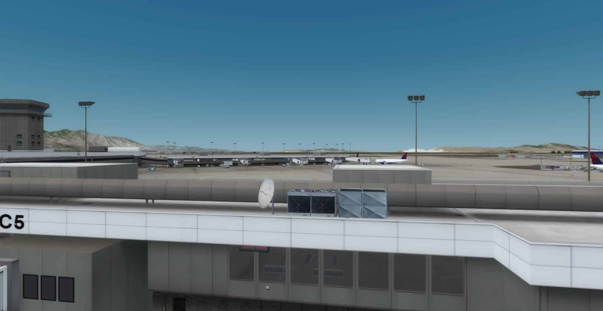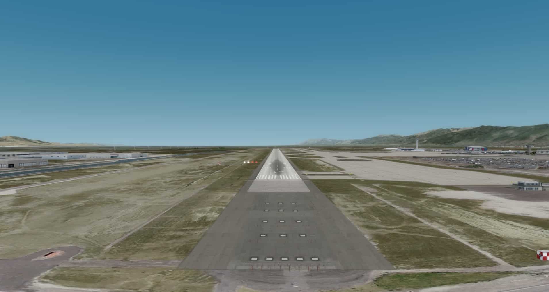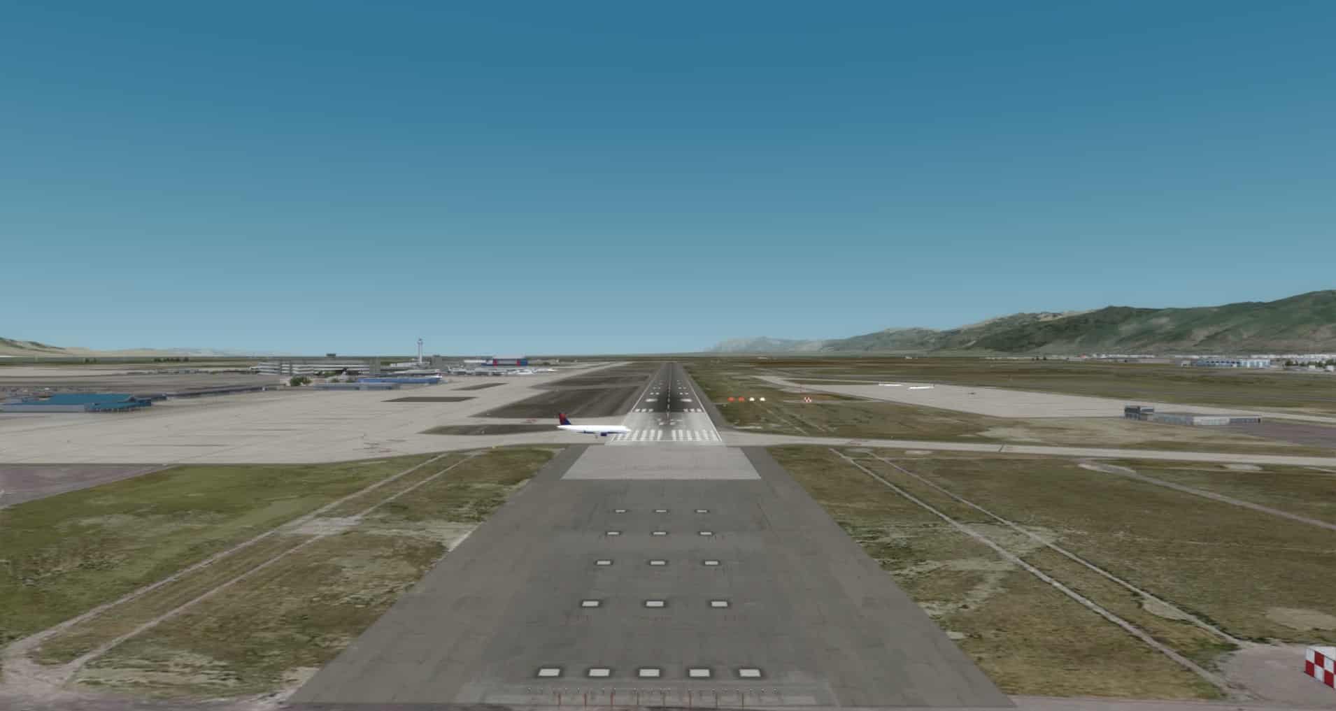 Der örtliche Flughafen trägt den wenig phantasievollen Namen Salt Lake City International Airport. Er fertigt jährlich etwa 20 Millionen Passagiere ab (zum Vergleich: Frankfurt 60 Mio.), verfügt dafür über 3 Terminals, und – ungewöhnlich für einen derart großen Verkehrsflughafen – einen relativ großen General Aviation-Bereich. Der Verkehr wird mit vier weitgehend parallelen Bahnen abgewickelt. 16L/34R und 16R/34L sind 3,7 km lang, östlich davon liegt die ca. 3 km lange Bahn 17/35. Neben diesen großen Bahnen gibt es noch die 14/32 mit 1,5 km Länge. Aus Gründen des Lärmschutzes wird der Verkehr hier bei geeigneten Windverhältnissen aus und nach Norden abgewickelt (siehe hier), ein Konzept, das sich im FSX/P3D nur schwierig nachbilden lässt.