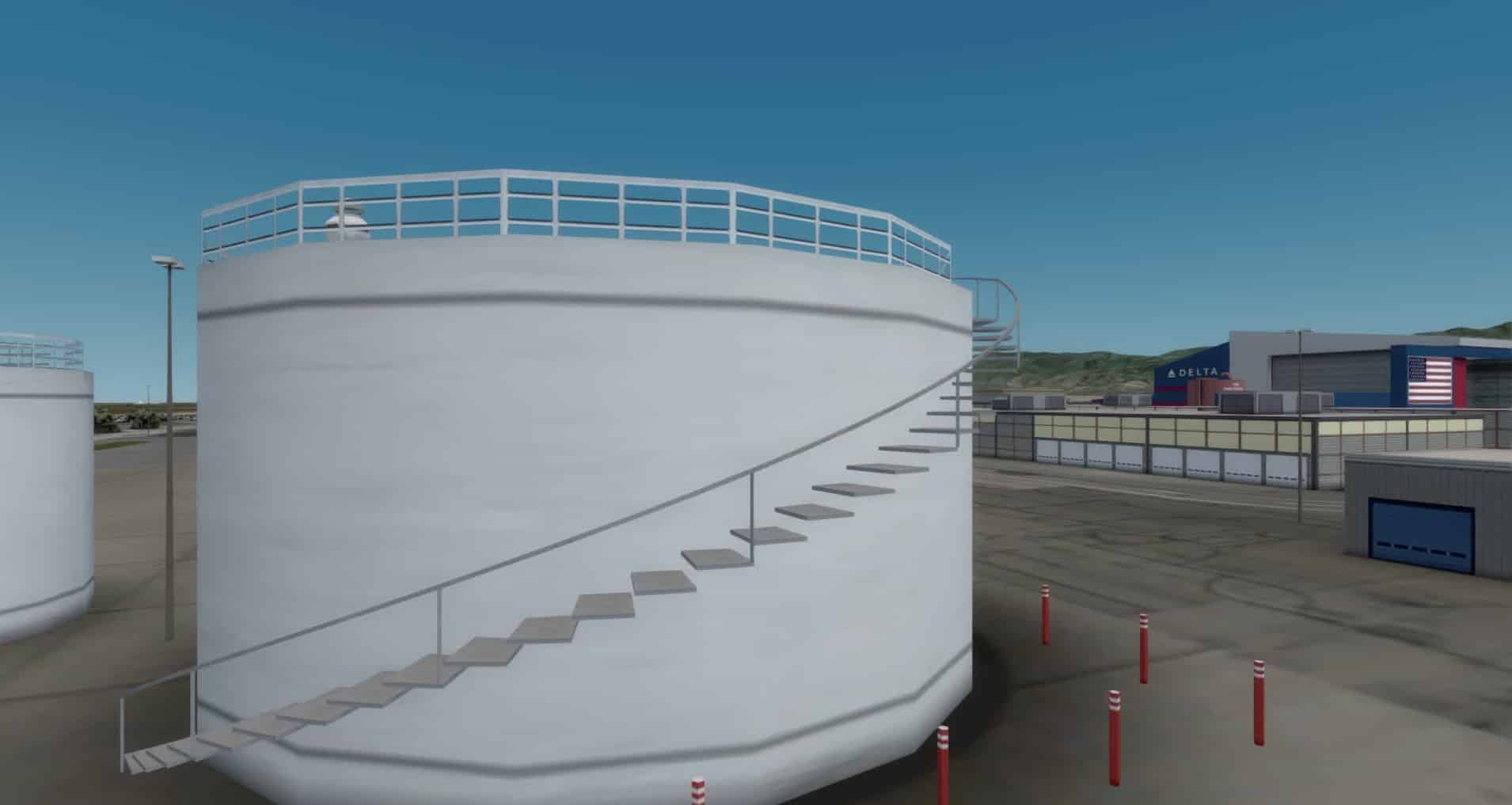 Neben dem Terminal, auf das man als Simulatorpilot permanent blickt, ist auch eine Vielzahl von Nebengebäuden mit geringerer Detaillierung umgesetzt worden. Das geht grundsätzlich in Ordnung – leider ist der General Aviation-Bereich auf der Ostseite ebenfalls sehr grob modelliert und gerade hier werden sicher viele von euch ihre Flüge mit kleinen Maschinen starten, um die Umgebung zu erkunden.