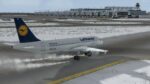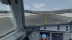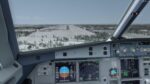Nach knapp einer Stunde geht es in den Sinkflug, dem verschneiten Bayern entgegen. Im Anflug bleiben die Frames stabil, der Approach ist durchweg flüssig. Auf den ersten Blick fügt sich die Szenerie gut in die Umgebung ein. Die Texturen der Landebahn und der umliegenden Bereiche sehen gut aus und die Landung erfolgt sanft per Autoland, damit Zeit zum Fotografieren bleibt. Nachdem mein Airbus A319 „vacated“ ist, lässt sich das Gelände bei gemäßigter Geschwindigkeit in Ruhe betrachten. Auffällig ist sofort das 3D-Grass, das überall aus dem Schnee sprießt und auch Wallanlagen, Besucherhügel und einige Bäume sind nicht schneebedeckt, sondern saftig grün wie an einem freundlichen Juni-Morgen. Das macht die anfänglich passende Atmosphäre dann doch ein wenig kaputt.