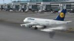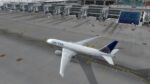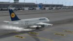 Das Lufthansa-Terminal ist zwar kapazitär auf die gleiche Menge an Passagieren ausgerichtet wie Terminal 2, wirkt in seiner Erscheinung allerdings wesentlich größer. Durch die weitläufigen Glasfronten kann man einen Blick in das Innenleben der Wartehallen werfen und in den Treppenhäusern sind Werbebanner und Fahrtreppen zu sehen. Die charakteristischen Ms und Kraniche machen eine gute Figur und sind weitestgehend scharf modelliert. Durch viele Fahrzeuge die statisch sowie dynamisch das Terminalvorfeld bevölkern wird der Szenerie ein wenig Leben eingehaucht, schade nur das man des öfteren auf amerikanisches Fabrikat trifft. Leider gibt es trotz reichhaltigem Platzangebot an beiden Terminals nur eine einzige Heavy-Parkposition. Rückt man mit schwerem Gerät an und möchte sich durch GSX versorgen lassen, muss man dem Tool deshalb erst händisch mitteilen, dass die Position für die entsprechende Maschine geeignet ist.