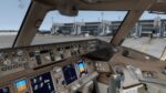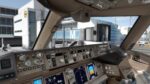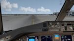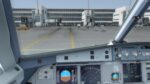 Terminal 1, quasi das Ur-Terminal des Flughafens, ist von den Entwicklern realitätsgetreu in seiner derzeitigen Form umgesetzt worden. Die individuelle Architektur des Gebäudes ist gut getroffen und auch Details wie Treppenhäuser und Passagierbrücken sind sauber dargestellt. Die Parkposition für Emirates´ A380 ist mit drei Fluggastbrücken umgesetzt worden. Schön gemacht sind die Sonnenblenden der Fensterfront und ihre Übergänge. Die Texturen sind scharf und gut integriert, sodass keine Bereiche farblich vom Umfeld abweichen. Leider zieht sich am gesamten Terminal entlang ein schwarzer Streifen auf dem Boden, der aus dem Cockpit heraus allerdings weniger ins Gewicht fällt. Auf dem Vorfeld sind verschiedene Fahrzeuge abgestellt, die aber teilweise entgegen der Parkstreifen stehen oder ineinander verschoben sind.