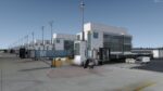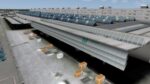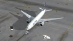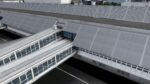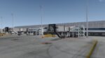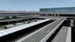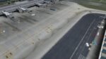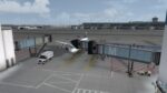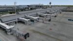 Auf der Rückseite des Satelliten gibt es ein paar Ungereimtheiten. So zweigt von einer Brücke ein durchsichtiger Gang ab, der in der Luft endet und auf der anderen Seite des Gebäudes sollen Flugzeuge anscheinend von rechts geboarded werden: Drei Positionen sind seltsam verschoben zu zwei zugehörigen Jetways angeordnet. Insgesamt zeigt sich aber auch dieser Bereich gut modelliert und größtenteils sauber dargestellt. Inwiefern die Konsturktion und Positionsverteilung der Realität entspricht lässt sich schwerlich feststellen, da der Satellit zur Zeit noch nicht eröffnet ist.