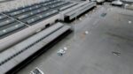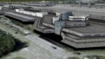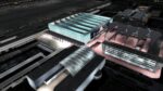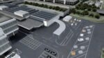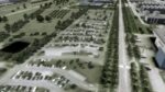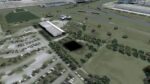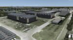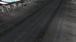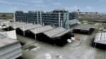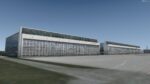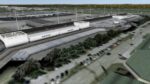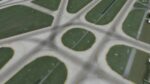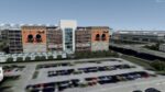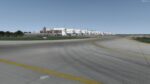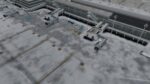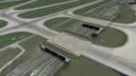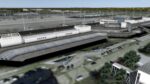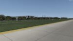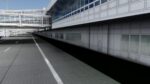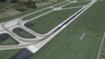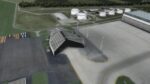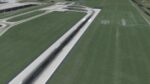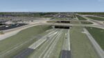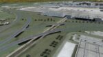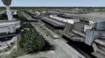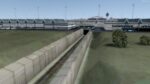 Der gesamte westliche Bereich des Flughafens ist flächendeckend nur grob wiedergegeben. Modelle wie die der S-Bahn-Züge sind sehr oberflächlich umgesetzt, Gebäude und ihre Texturen einfach abgebildet. Auch die Einpflegung der Tunnel-Rampe ist wenig detailliert und passt sich sehr ungenau ins Mesh ein. Auch hier sticht das grob aufgelöste Luftbild bei näherer Betrachtung deutlich heraus. Prinzipiell ist aber alles vorhanden (ausser ein fehlendes Gebäude, erkennbar am schwarzen Quadrat auf dem Boden) und somit entsteht aus einiger Entfernung, wie beispielsweise aus dem Cockpit nach Takeoff, ein passendes Gesamtbild.