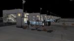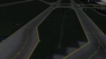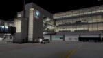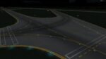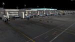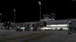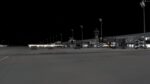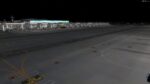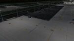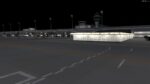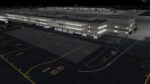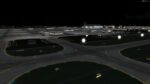 An Terminal 1 fällt auf, dass Tower und Apronkontrolle keine Beleuchtung haben, sondern einfach schwarz sind. Die Vorfeldlotsen erreichen ihren Arbeitsplatz nachts über eine Fototapete. Dafür ist der scharze Streifen am Terminalsockel verschwunden. Abseits der Abfertigungsgebäude stechen die Taxiway-Linien stark aus der Dunkelheit hervor. Irgendetwas ist hier mit dem Farbton schiefgelaufen, denn auf diese Weise wirken die Rollwege sehr unnatürlich.