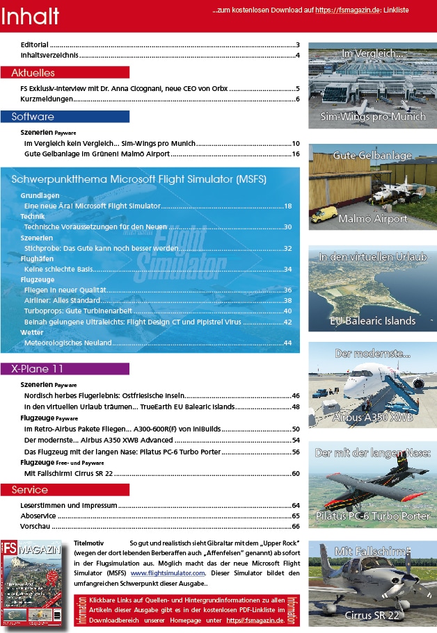 Im Editorial geht es um den neuen Microsoft Flight Simulator (MSFS) – was sonst?
