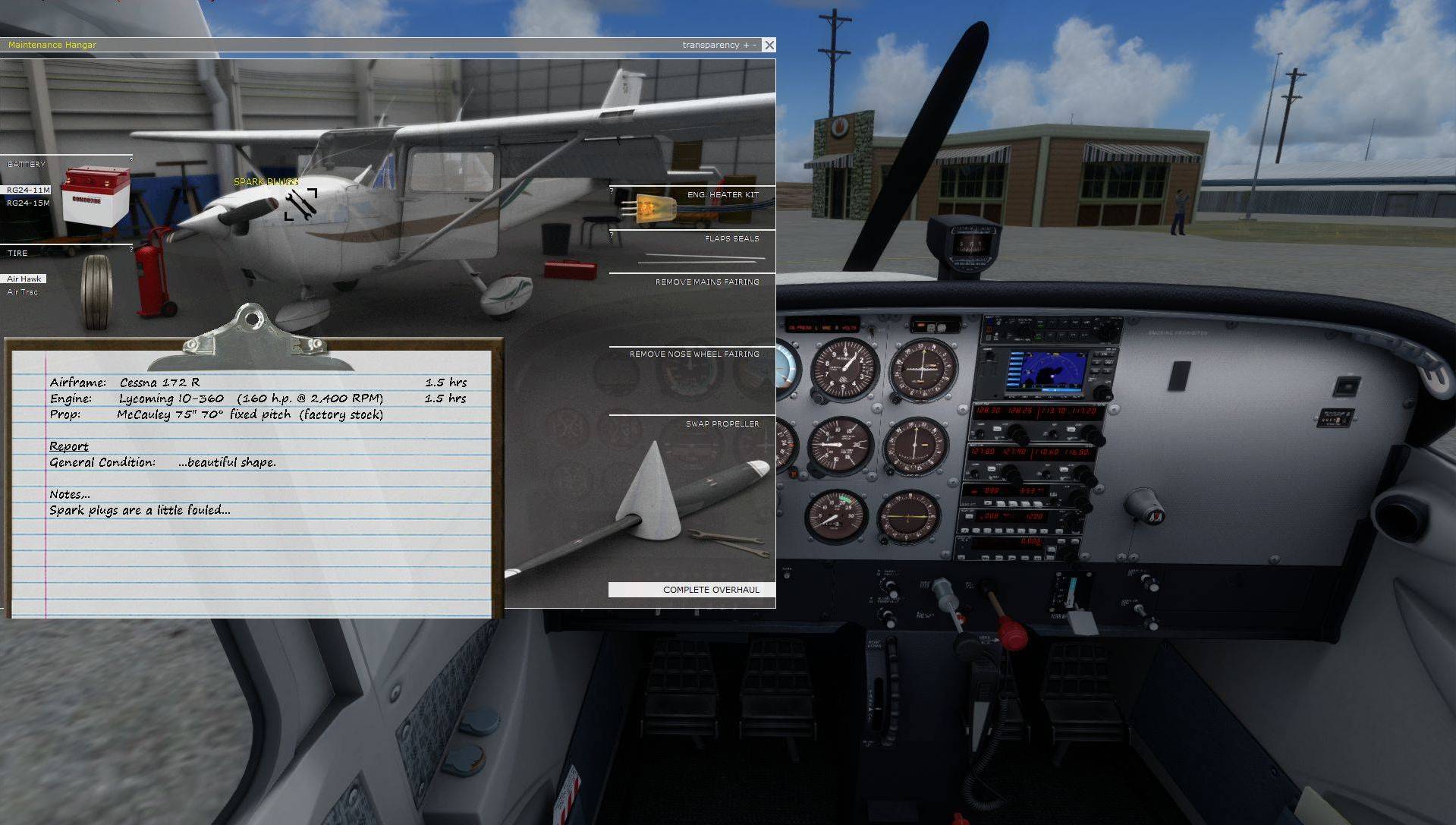 Im Hangar kann man auch Modifikationen vornehmen, wie andere Batterien oder Zündkerzen einsetzen. Es gibt eine Vielzahl von Dingen zu beachten und zu erkunden, die im 100 Seiten langen Handbuch (im PDF Format) auch detailliert beschrieben werden.