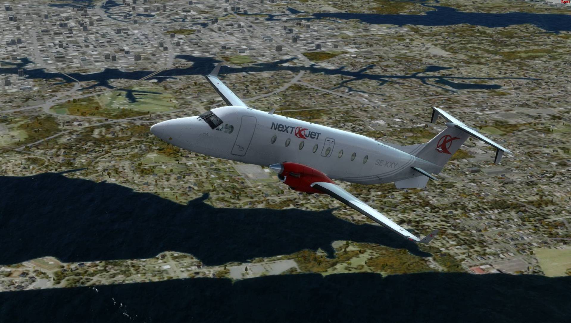 Das Turbopropmodell ist aber nicht realistisch, und das ist auch bei der B1900D so. Nur die Saab 340A von LES hat ein realistisches Triebwerk, und das ist dann halt auch selbstprogrammiert.