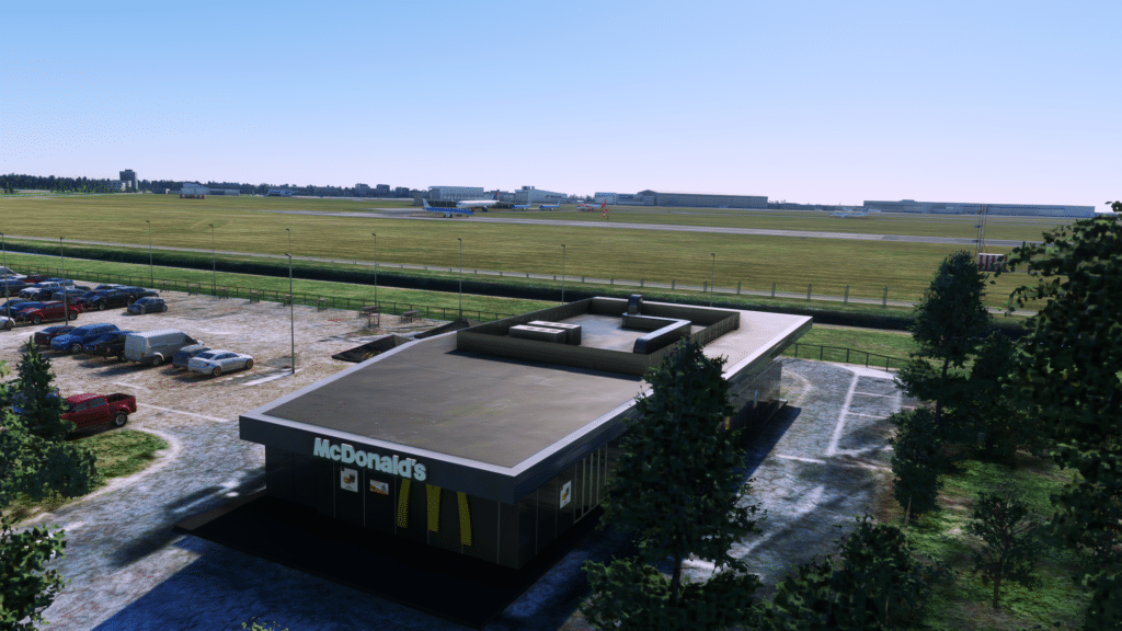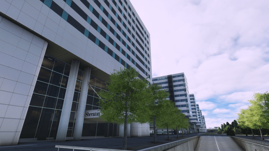 Der Cargo-Bereich und die Hangars wurde auch alle dargestellt. Alle Hangars wurden gut texturiert und modelliert. Die Vielzahl an Cargo Gebäuden wurde auch hinzugefügt und sehr detailliert abgebildet, die Gebäude in der Umgebung um den Flughafen wurden auch in einer Vielzahl abgebildet, somit wurden auch die wichtigen Spotterpoints integriert. Ihr könnt jetzt von dem McDonalds direkt an der Lande-Startbahn die startenden und landenden Flugzeuge beachten. Außerdem könnt ihr die Hotels wie das Sheraton besuchen, und es bewundern.